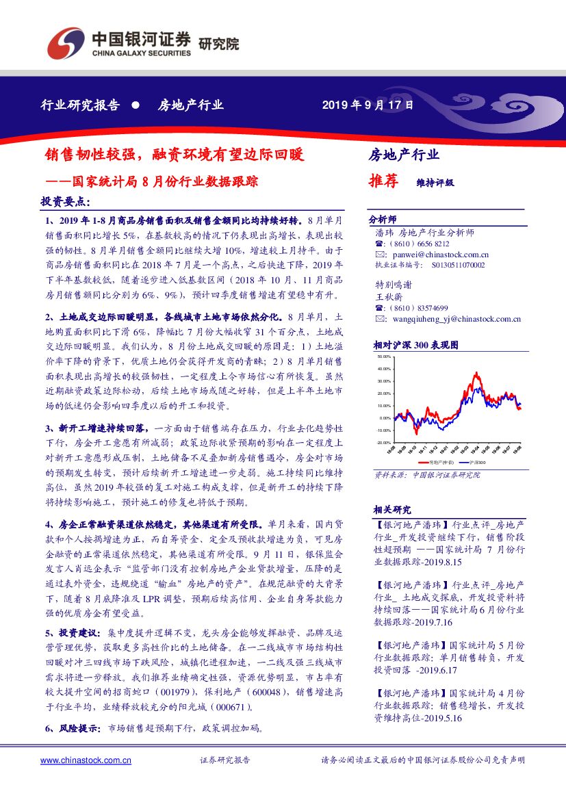 中国银河:房地产行业国家统计局8月份行业数据跟踪:销售韧性较强,融资环境有望边际回暖.pdf