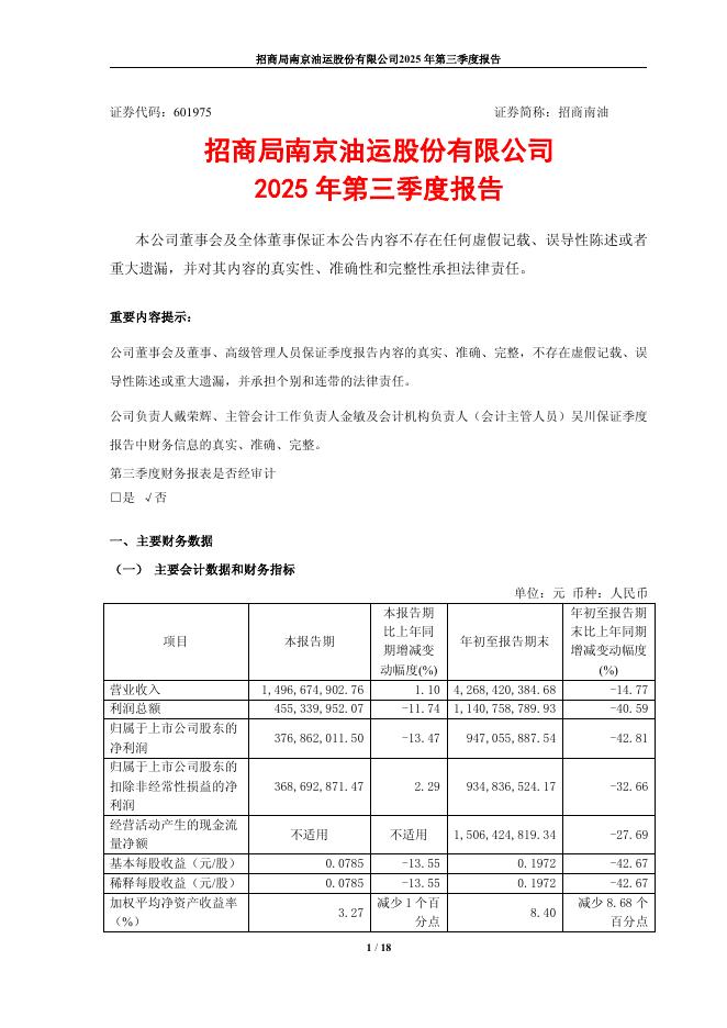 601975-招商南油:招商南油2025年第三季度报告.pdf