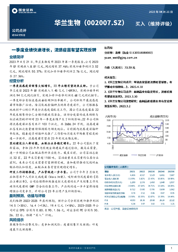 国金证券:华兰生物(002007)-一季度业绩快速增长,流感疫苗有望实现反转.pdf