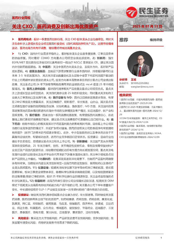 民生证券:医药行业周报:关注CXO、医药消费及创新出海优质资产.pdf