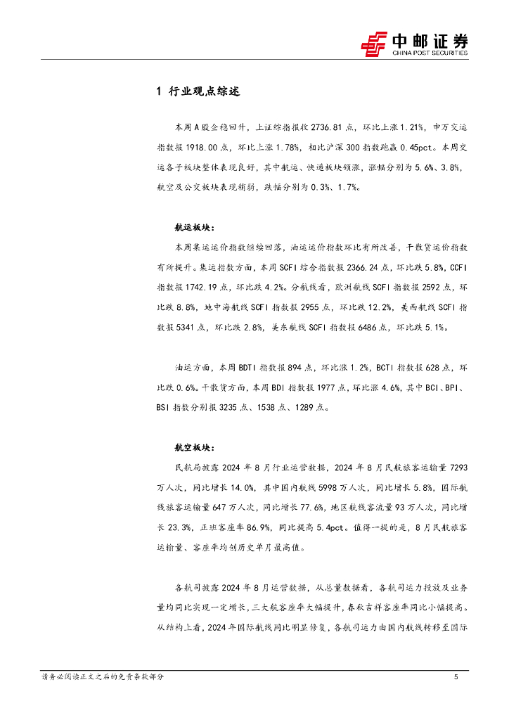 中邮证券:交通运输行业报告:航空8月客流创历史新高,快递价格降幅收窄.pdf