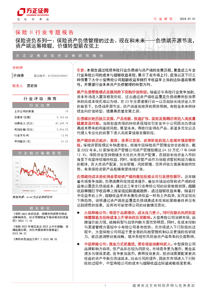 方正证券:保险行业专题报告—保险资负系列一:保险资产负债管理的过去、现在和未来—负债端开源节流,资产端运筹帷幄,价值转型箭在弦上.pdf
