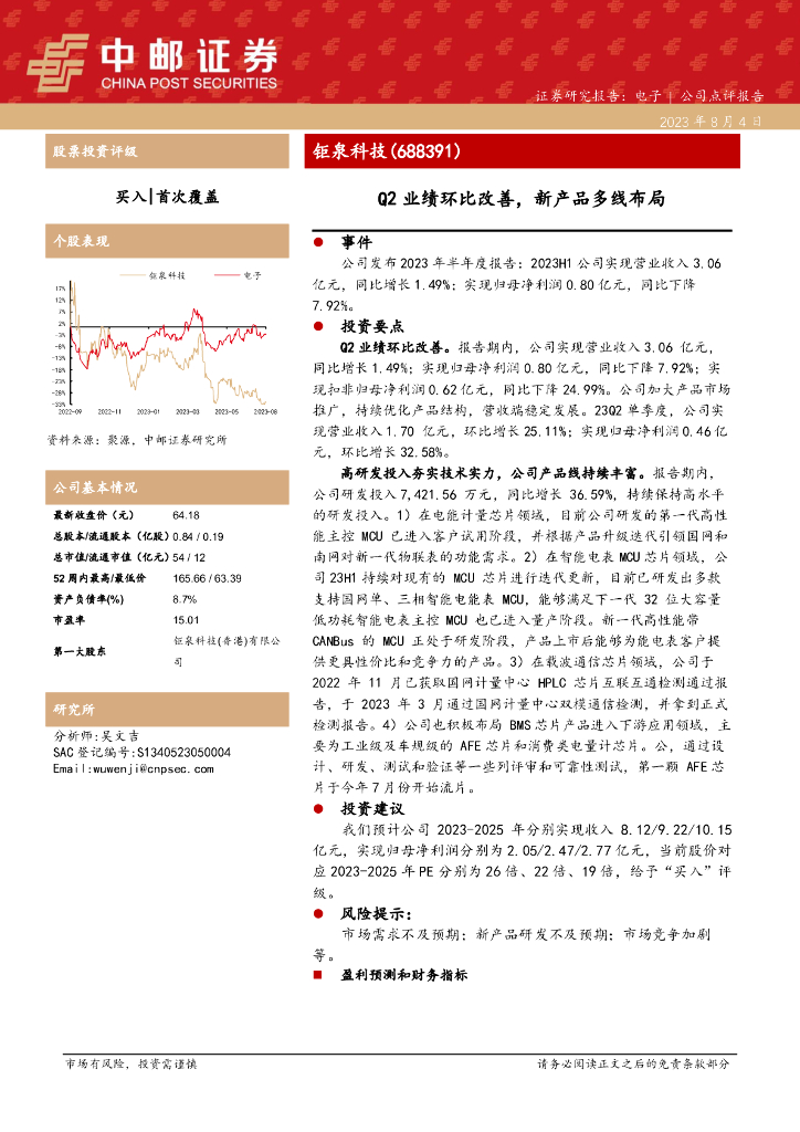 中邮证券:钜泉科技(688391)-Q2业绩环比改善,新产品多线布局.pdf