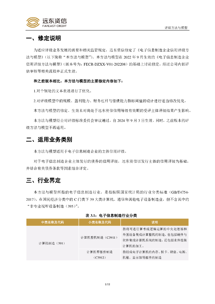 远东资信:电子信息制造企业信用评级方法与模型(FECR-DZXX-V02-202312).pdf