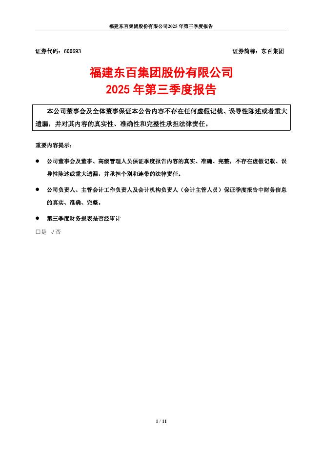 600693-东百集团:东百集团2025年第三季度报告.pdf