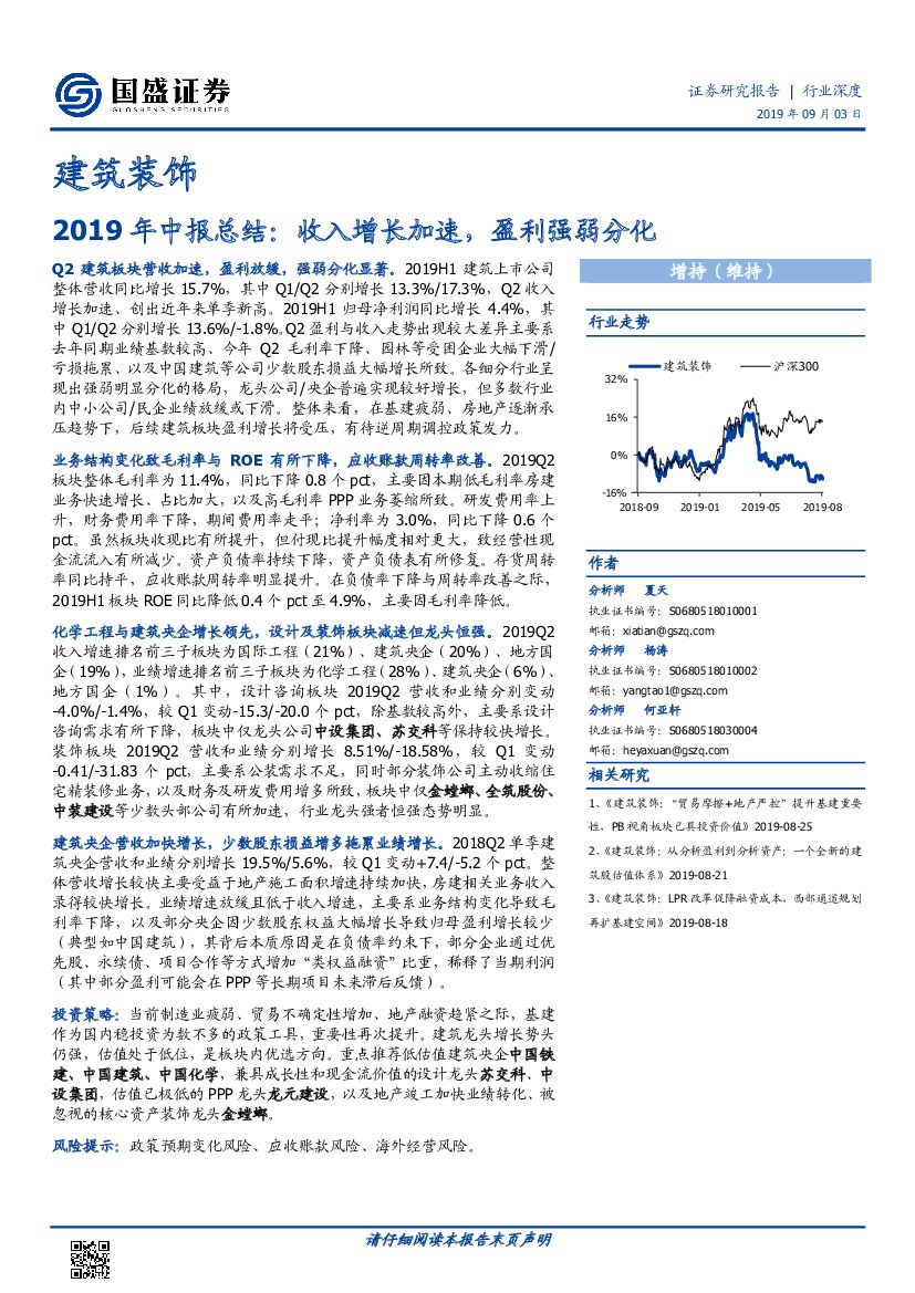 国盛证券:建筑装饰2019年中报总结:收入增长加速,盈利强弱分化.pdf