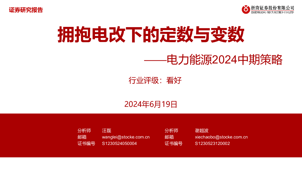 浙商证券:电力能源2024中期策略:拥抱电改下的定数与变数.pdf