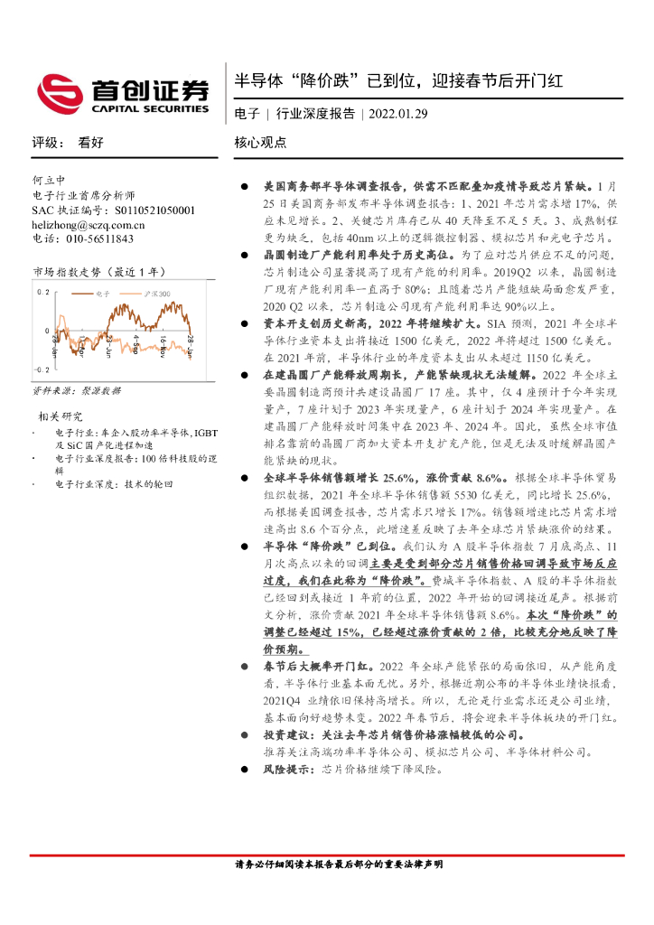 首创证券:电子行业深度报告:半导体“降价跌”已到位,迎接春节后开门红.pdf
