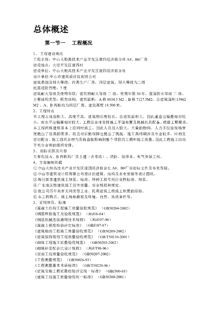 某技术产业开发区厂房施工组织设计.doc