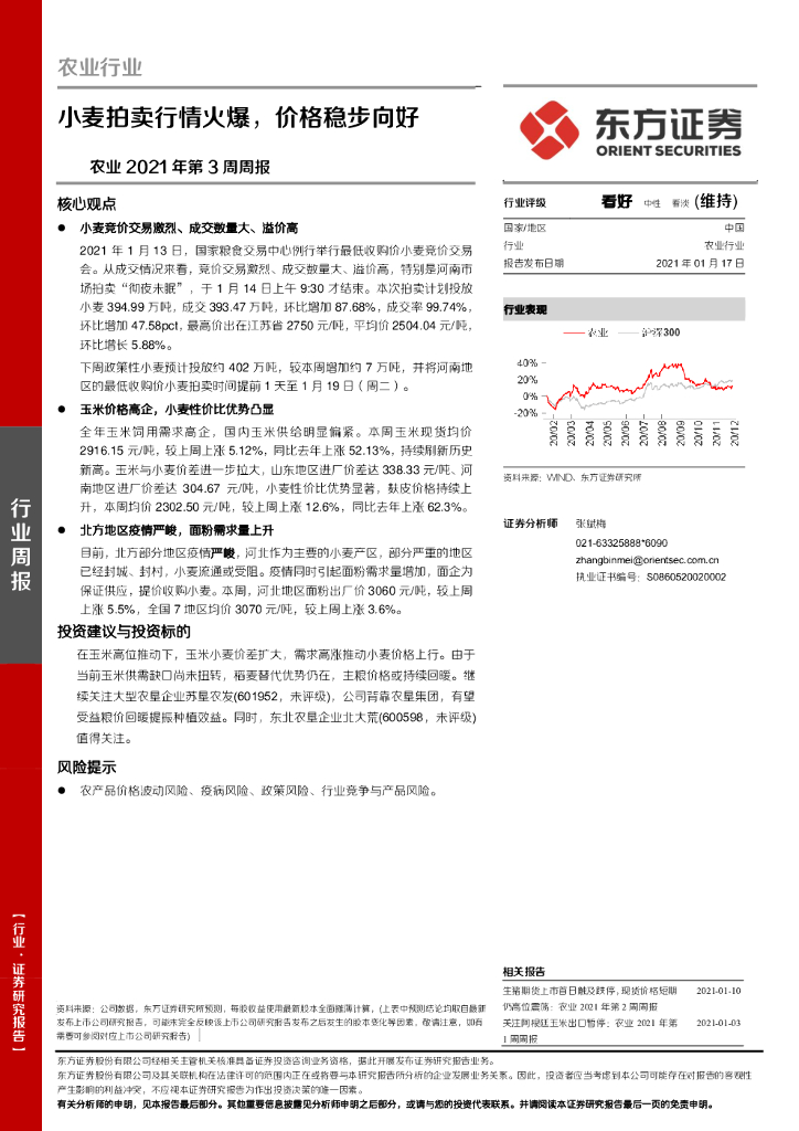东方证券:农业2021年第3周周报:小麦拍卖行情火爆,价格稳步向好.pdf