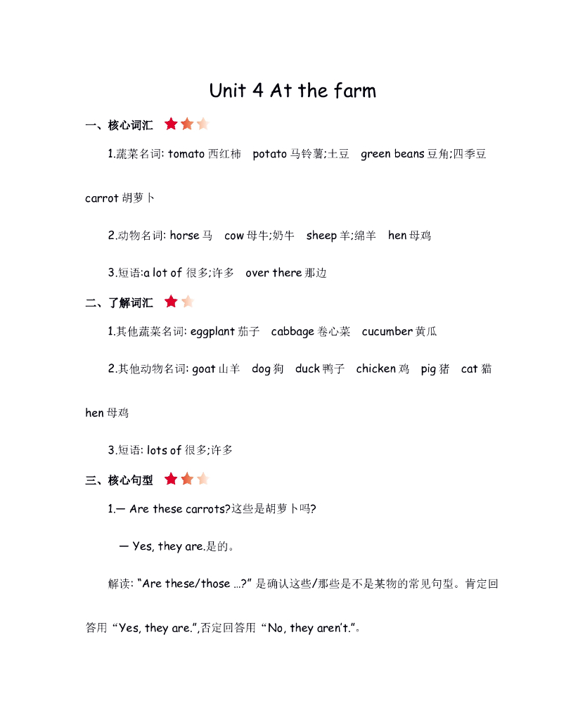 人教四下 Unit 4 知识清单.doc