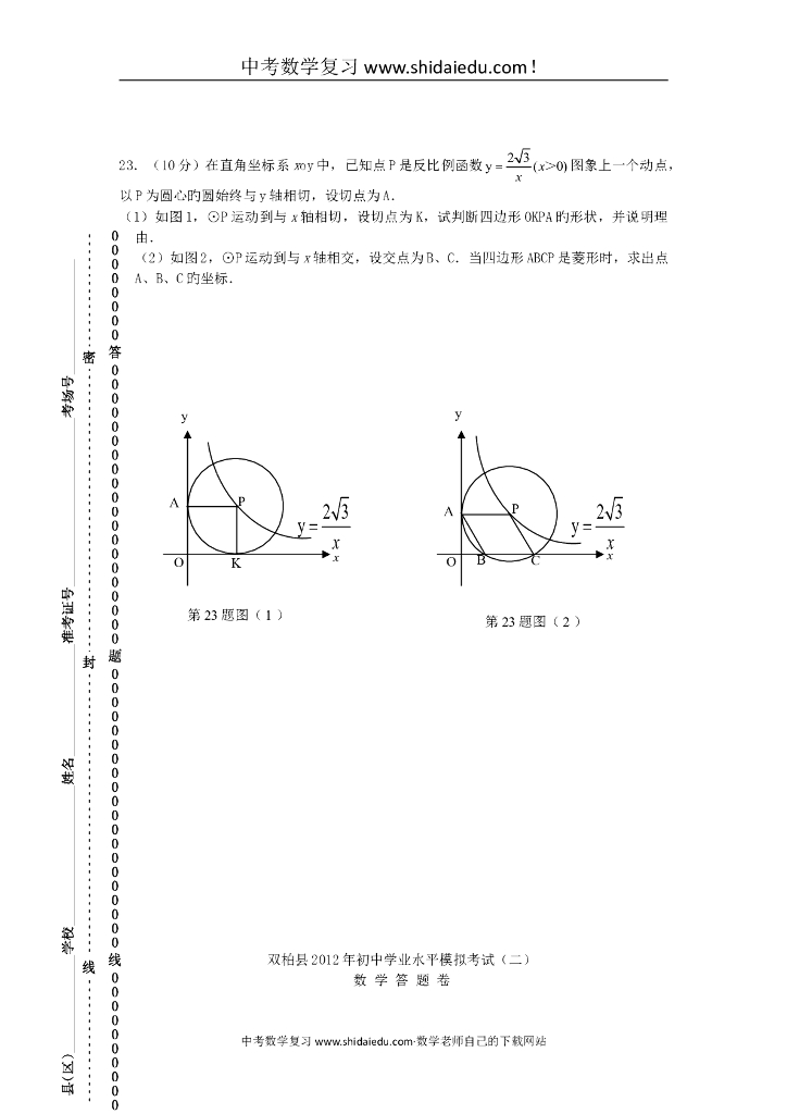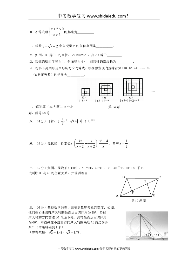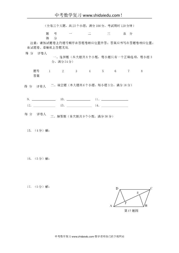 福建厦门外国语学校中考适应性试卷-数学3.doc