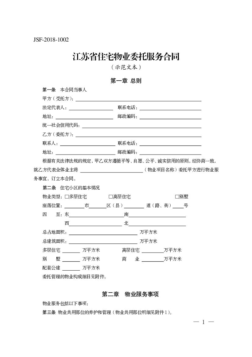 JSF-2018-1002 江苏省住宅物业委托服务合同(示范文本).pdf