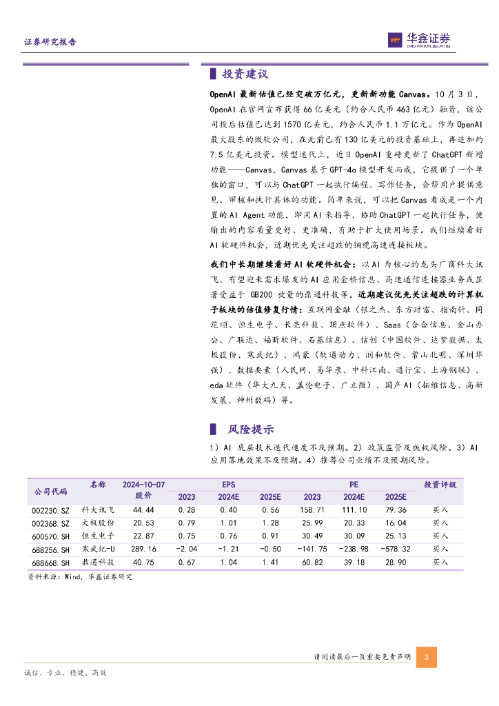 华鑫证券:计算机行业周报:板块有望迎来估值强修复,OpenAI宣布推出canvas.pdf