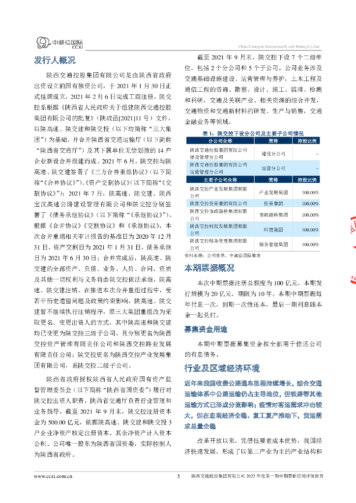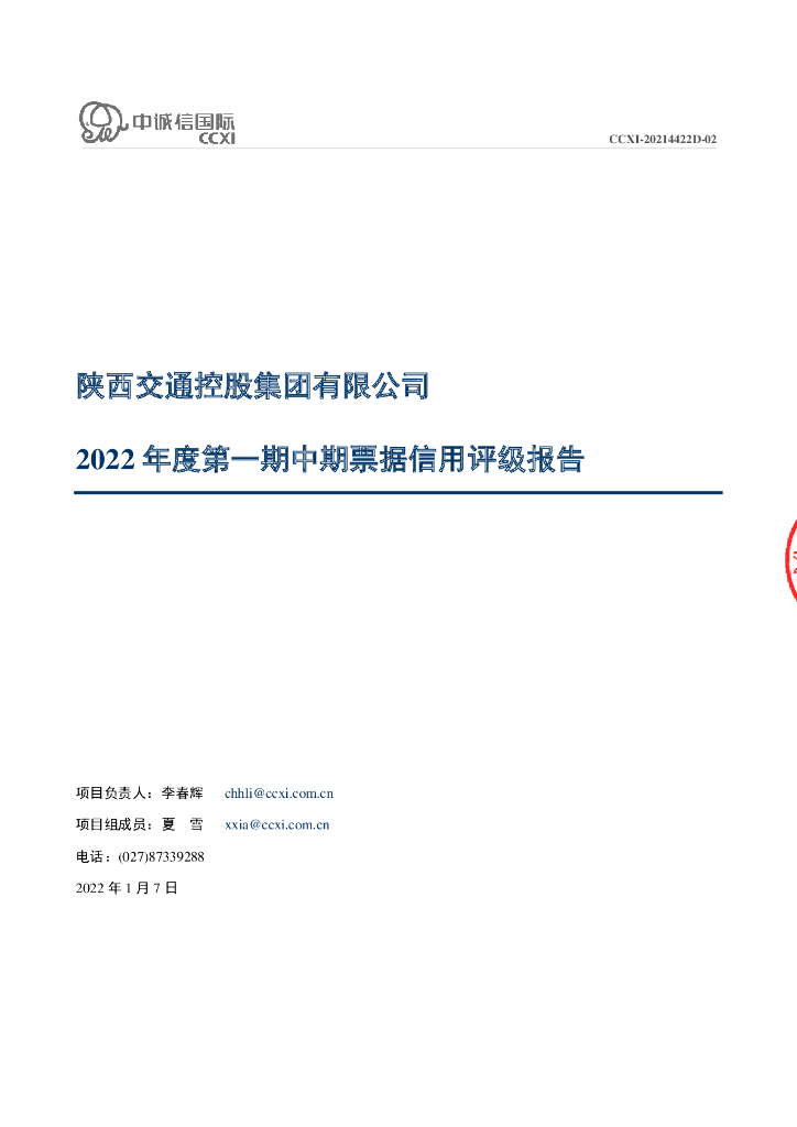 中诚信:陕西交通控股集团有限公司2022年度第一期中期票据信用评级报告.pdf