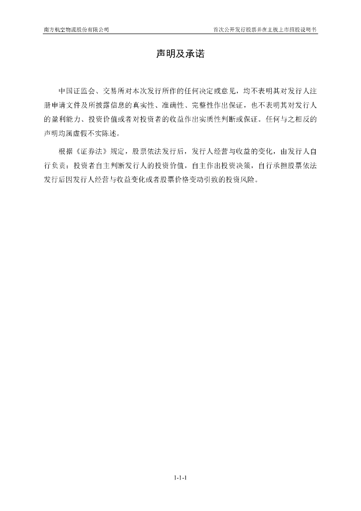 南方航空物流股份有限公司上交所主板IPO上市招股说明书(申报稿).pdf