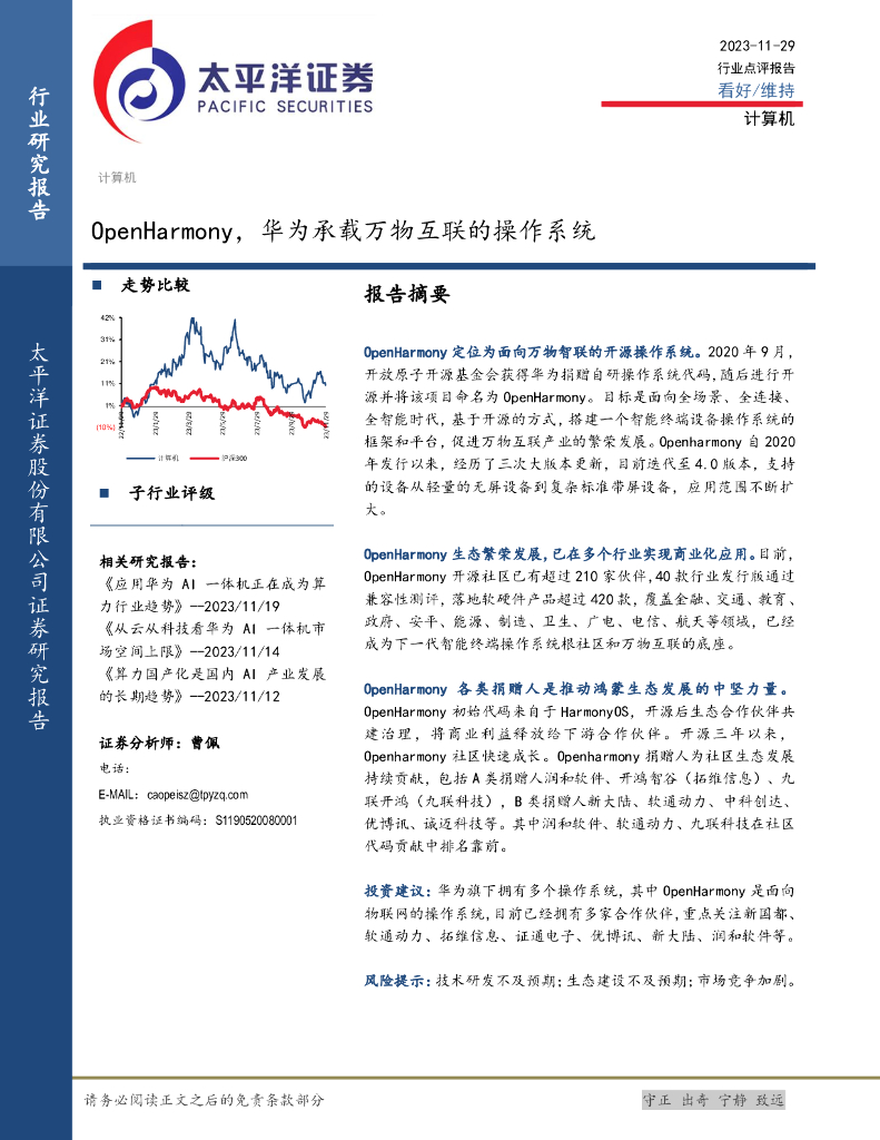 太平洋证券:计算机:OpenHarmony,华为承载万物互联的操作系统.pdf