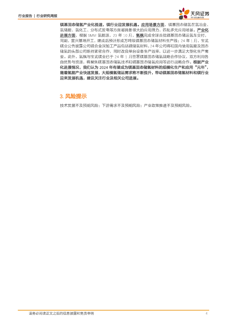 天风证券:金属与材料行业研究周报:镁基固态储氢产业化提速,镁行业迎发展机遇.pdf