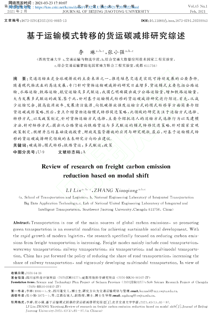 基于运输模式转移的货运碳减排研究综述.pdf