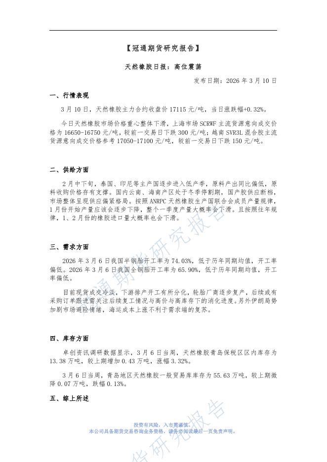 冠通期货:天然橡胶日报:高位震荡-260312.pdf