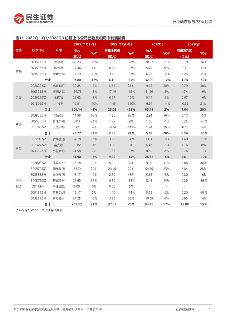 民生证券:纺织服装行业2022年三季报综述:疫情拖累恢复进程,压力之下上游仍具高确定性.pdf