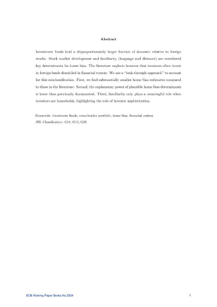 欧洲央行:家庭偏见有偏见吗?投资基金行业的新证据(英文版).pdf
