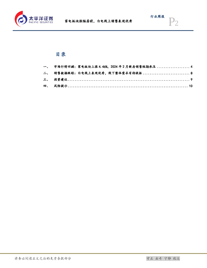 太平洋证券:白色家电Ⅱ行业周报:家电板块涨幅居前,白电线上销售表现优秀.pdf