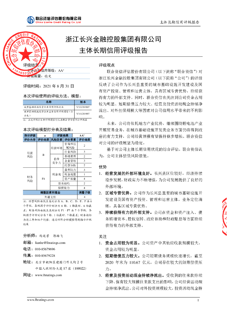 联合资信:担保人浙江长兴金融控股集团有限公司主体长期信用评级报告.pdf