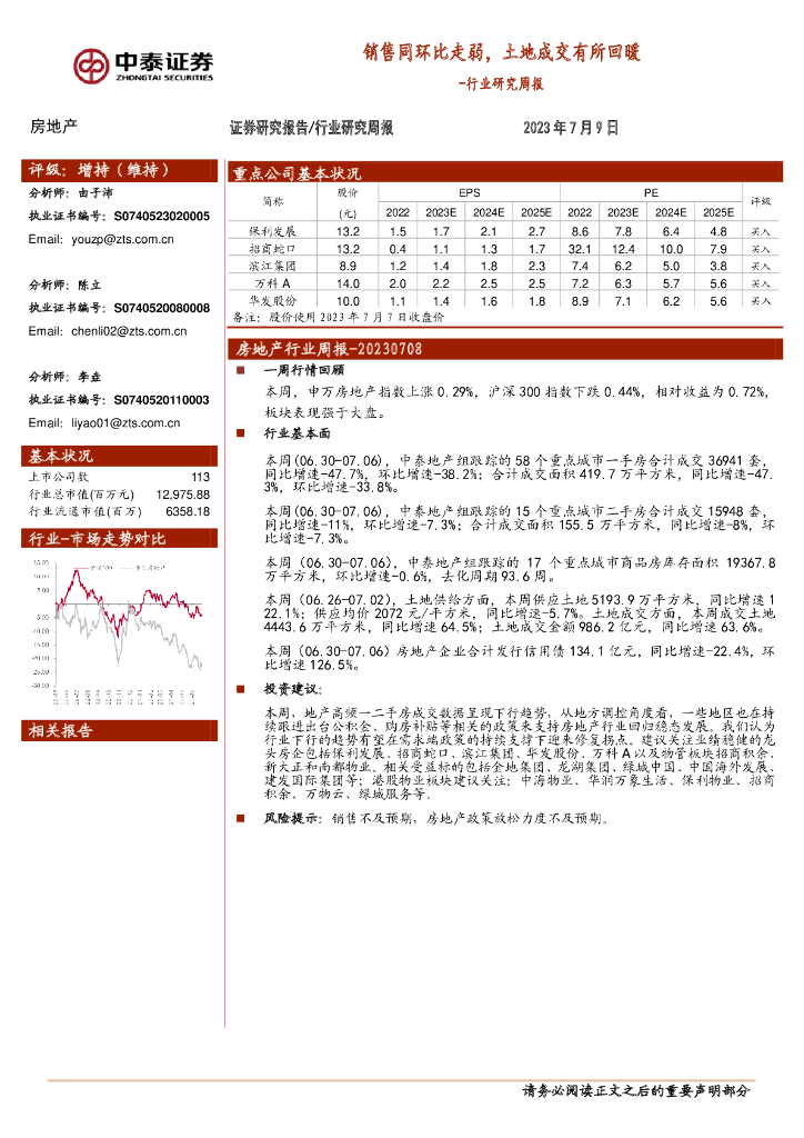 中泰证券:房地产行业研究周报:销售同环比走弱,土地成交有所回暖.pdf