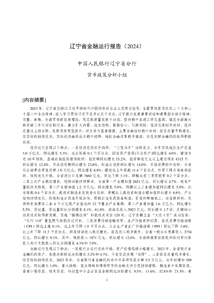 中国人民银行:辽宁省金融运行报告(2024).pdf