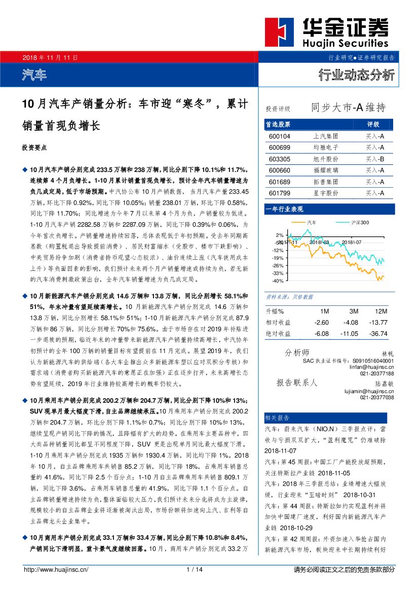 华金证券:10月汽车产销量分析:车市迎“寒冬”,累计销量首现负增长.pdf