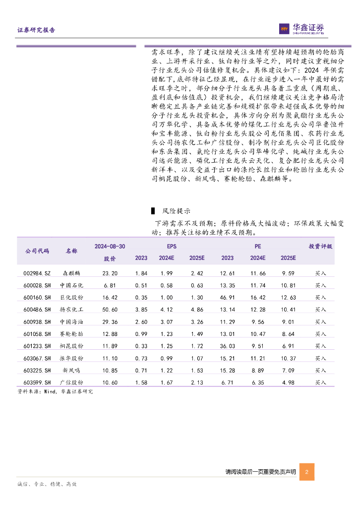 华鑫证券:基础化工行业周报:合成氨、顺丁橡胶等涨幅居前,建议继续关注石化板块和轮胎板块.pdf