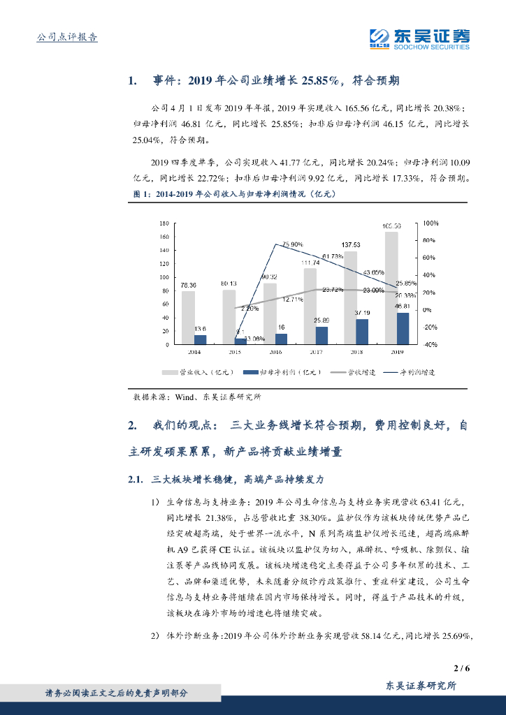 东吴证券:迈瑞医疗(300760)-三大业务线增长符合预期,自主研发硕果累累,新产品将贡献业绩增量.pdf