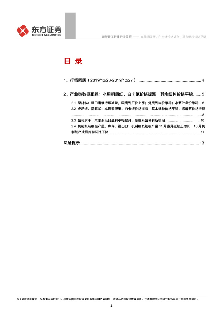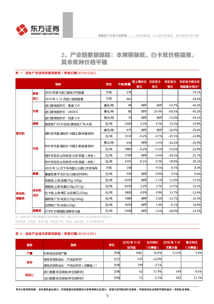 东方证券:造纸产业链数据每周速递:本周铜版纸、白卡纸价格提涨,其余纸种价格平稳.pdf