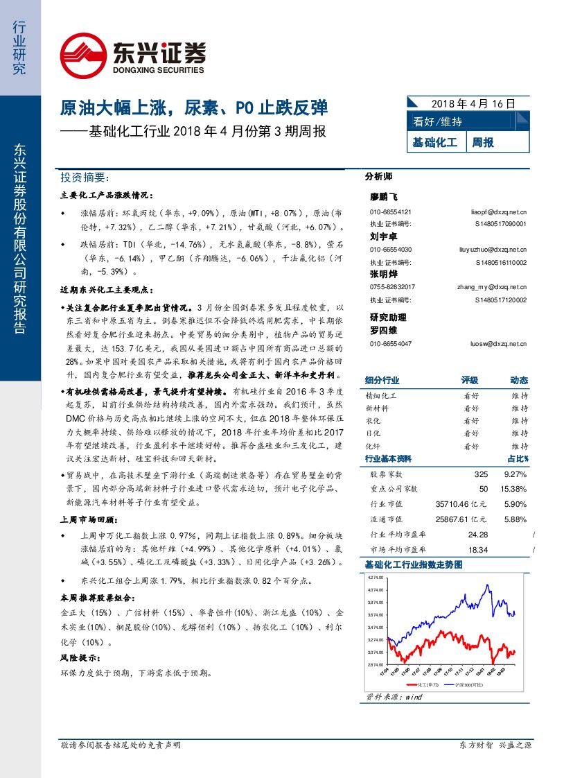 东兴证券:基础化工行业2018年4月份第3期周报:原油大幅上涨,尿素、PO止跌反弹.pdf