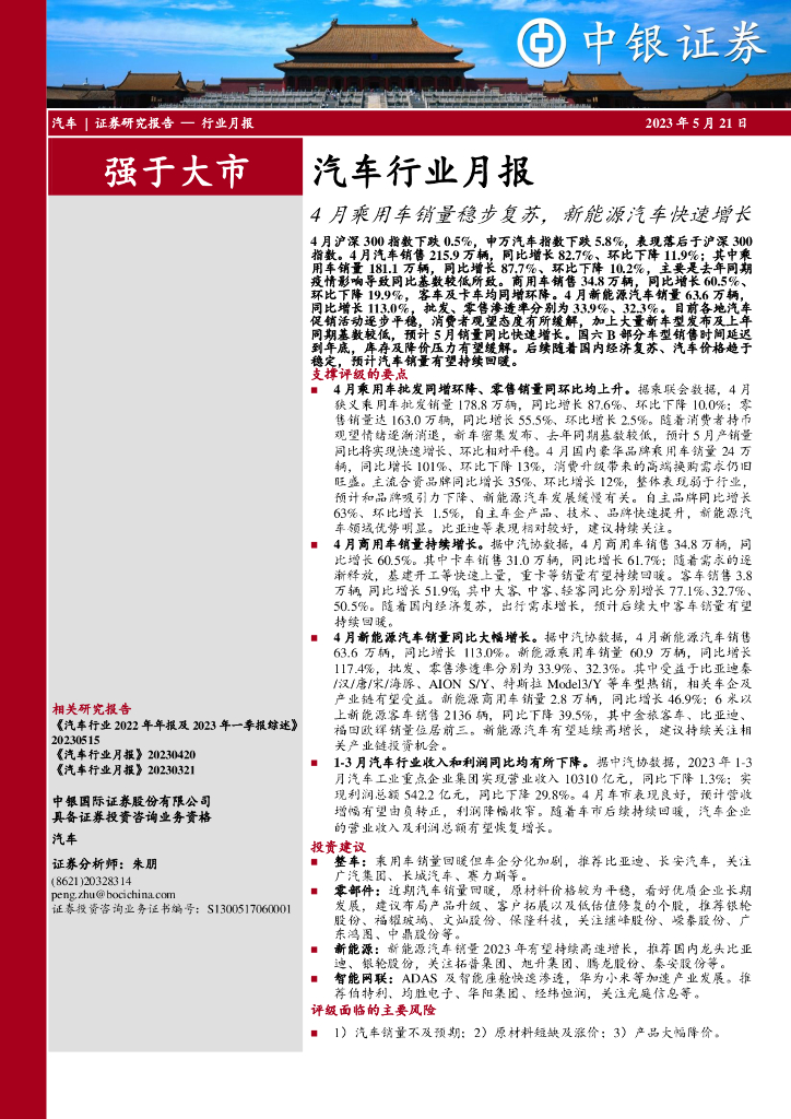中银证券:汽车行业月报:4月乘用车销量稳步复苏,新能源汽车快速增长.pdf
