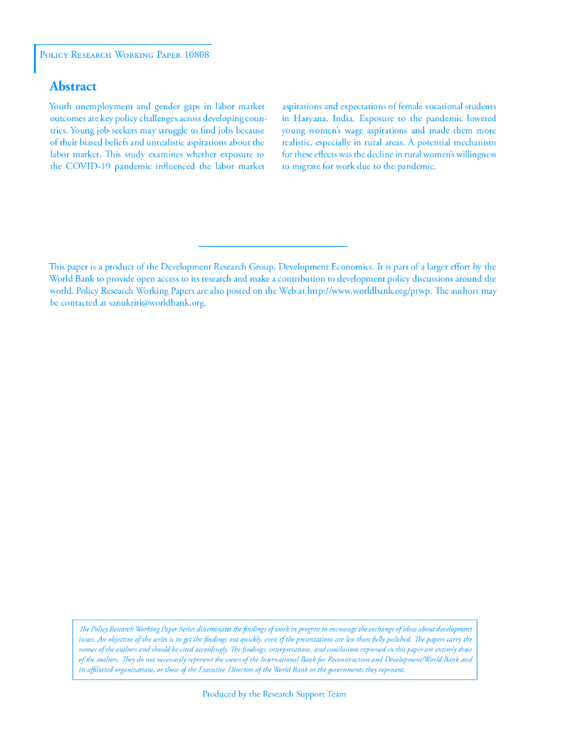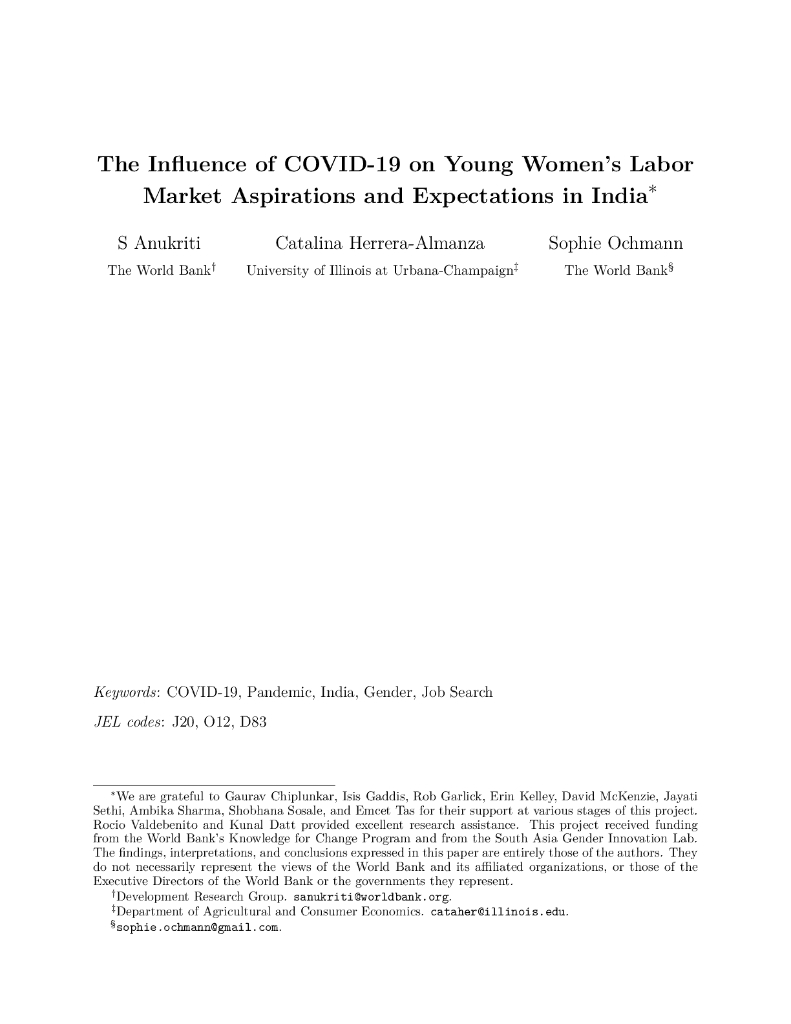 世界银行:新冠肺炎对印度年轻女性劳动力市场愿望和期望的影响(英文版).pdf