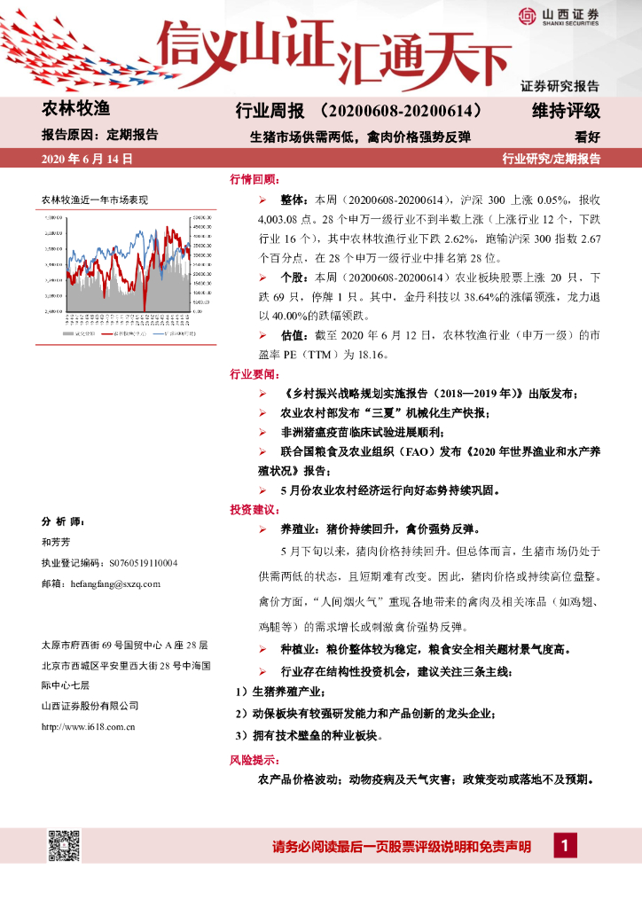 山西证券:农林牧渔行业周报:生猪市场供需两低,禽肉价格强势反弹.pdf