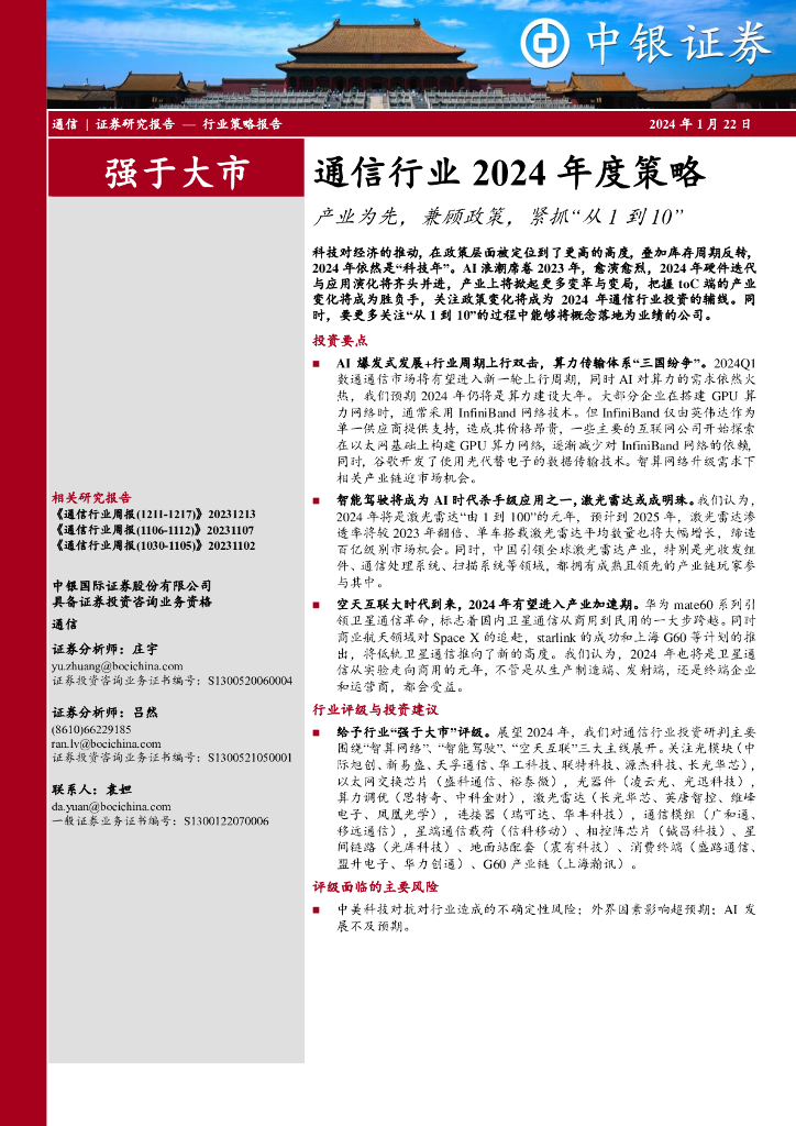 中银证券:通信行业2024年度策略:产业为先,兼顾政策,紧抓“从1到10”.pdf