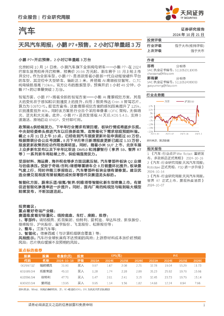 天风证券:汽车行业周报:小鹏P7+预售,2小时订单量超3万.pdf