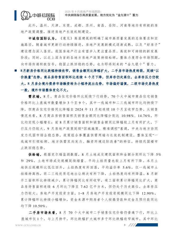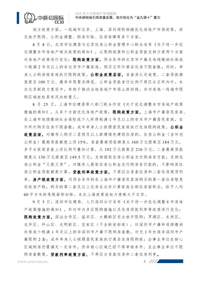 中诚信国际:2025年9月房地产市场跟踪:中央纲领指引高质量发展,地方优化为“金九银十”蓄力.pdf