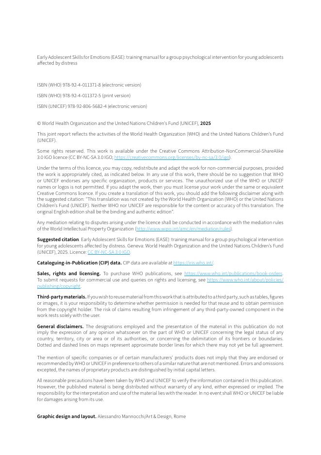 WHO世界卫生组织:2025年青少年早期情感技能(‎EASE)‎:针对受困扰影响的青少年群体的心理干预培训手册(英文版).pdf