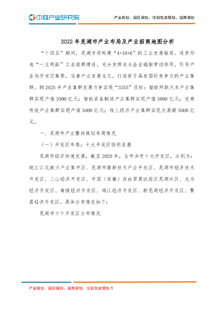 2022年芜湖市产业布局及产业招商地图分析.pdf