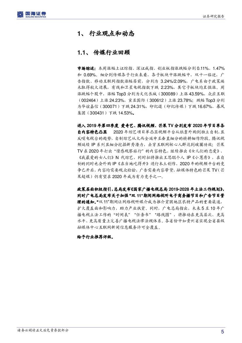 国海证券:传媒行业周报:视频平台2020年内容计划凸显各家优势 关注国产电影院线及年报预期改善标的.pdf