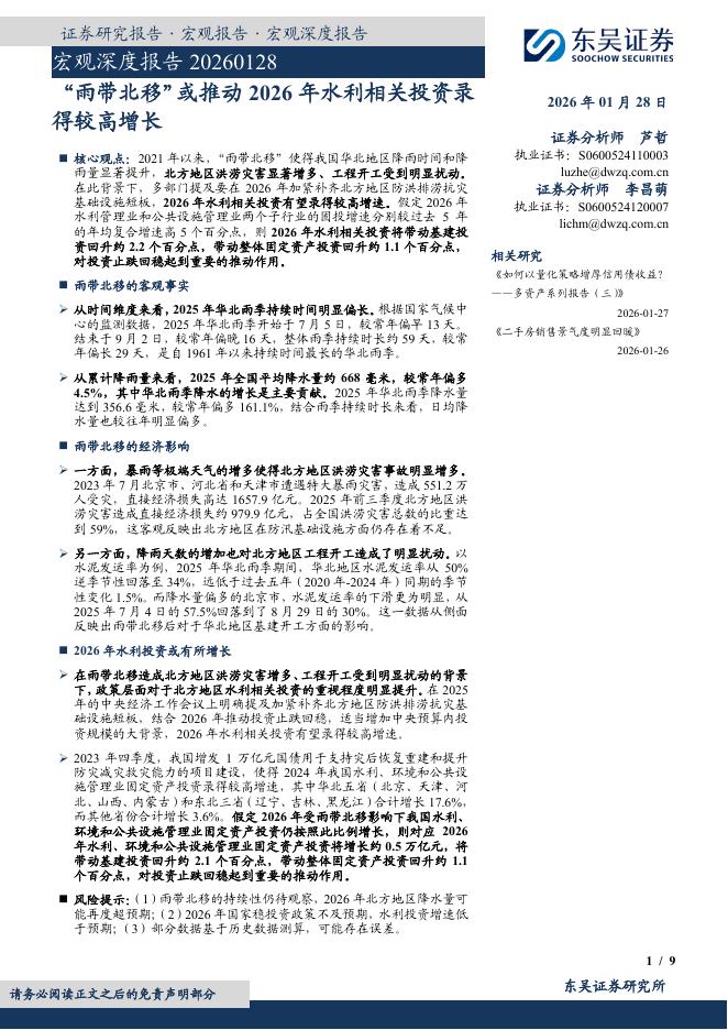东吴证券:宏观深度报告:“雨带北移”或推动2026年水利相关投资录得较高增长-260128.pdf