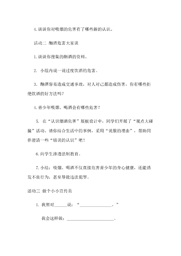 2021五年级上册 人教版小学道德与法治1.3主动拒绝烟酒毒品 1-3课时 非表格.doc