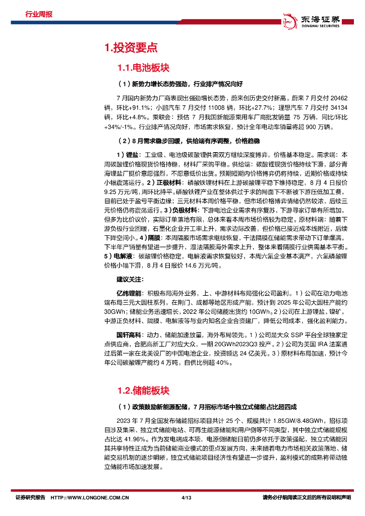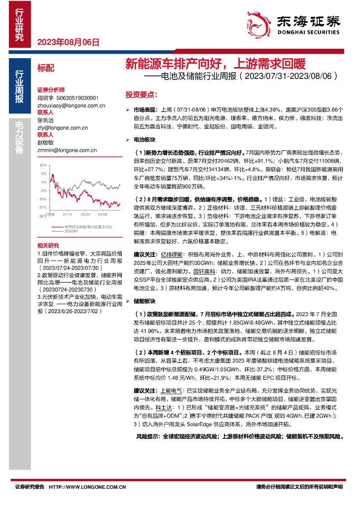 东海证券:电池及储能行业周报:新能源车排产向好,上游需求回暖.pdf