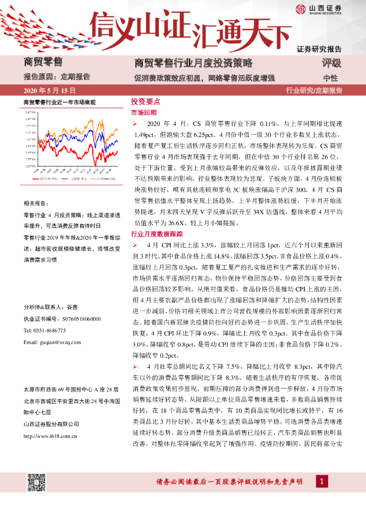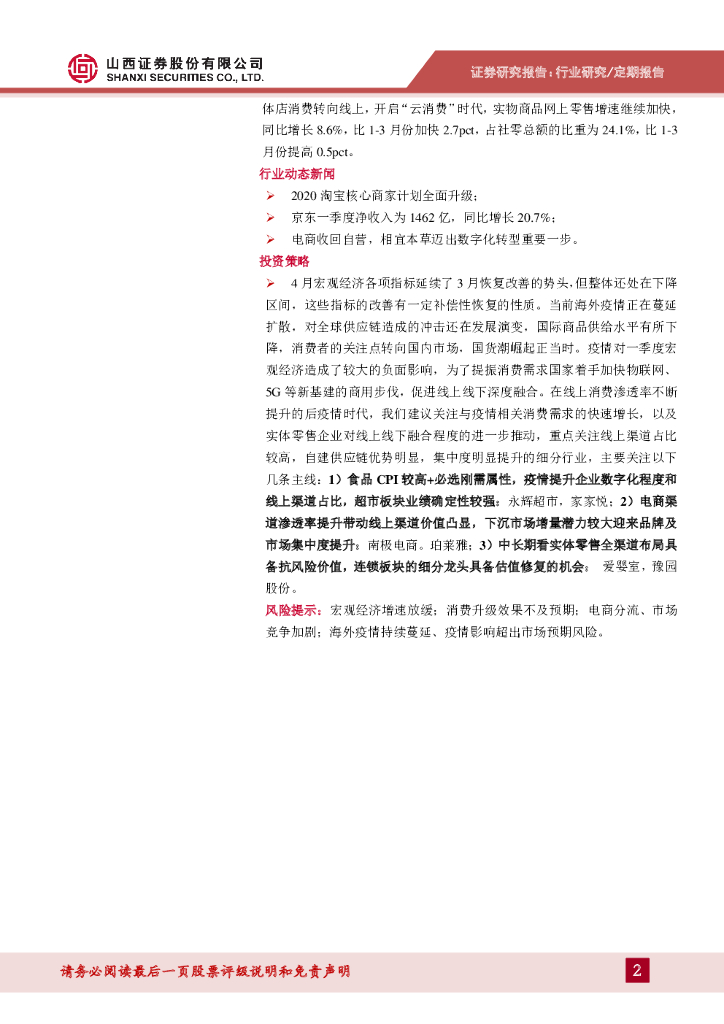 山西证券:商贸零售行业月度投资策略:促消费政策效应初显,网络零售活跃度增强.pdf