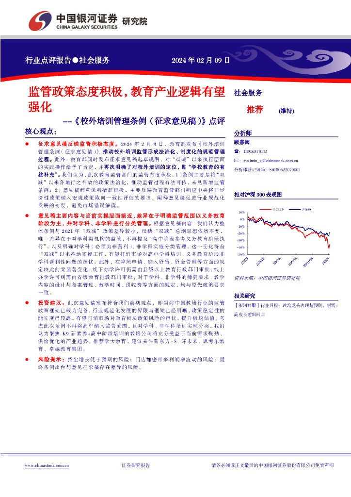 中国银河:社会服务《校外培训管理条例(征求意见稿)》点评:监管政策态度积极,教育产业逻辑有望强化.pdf