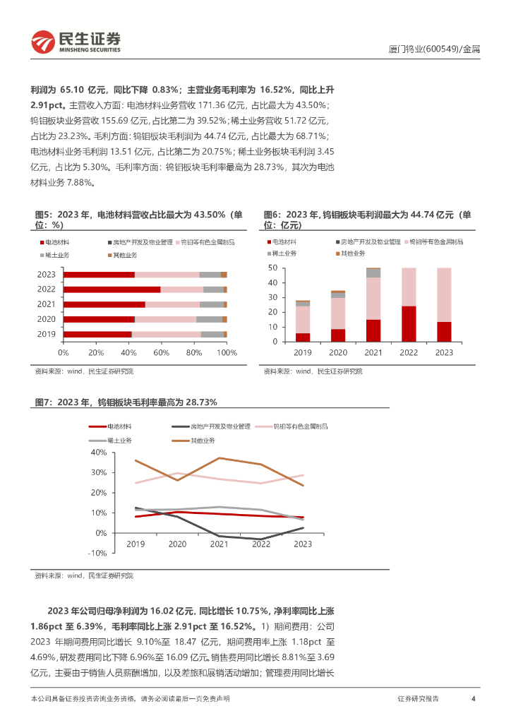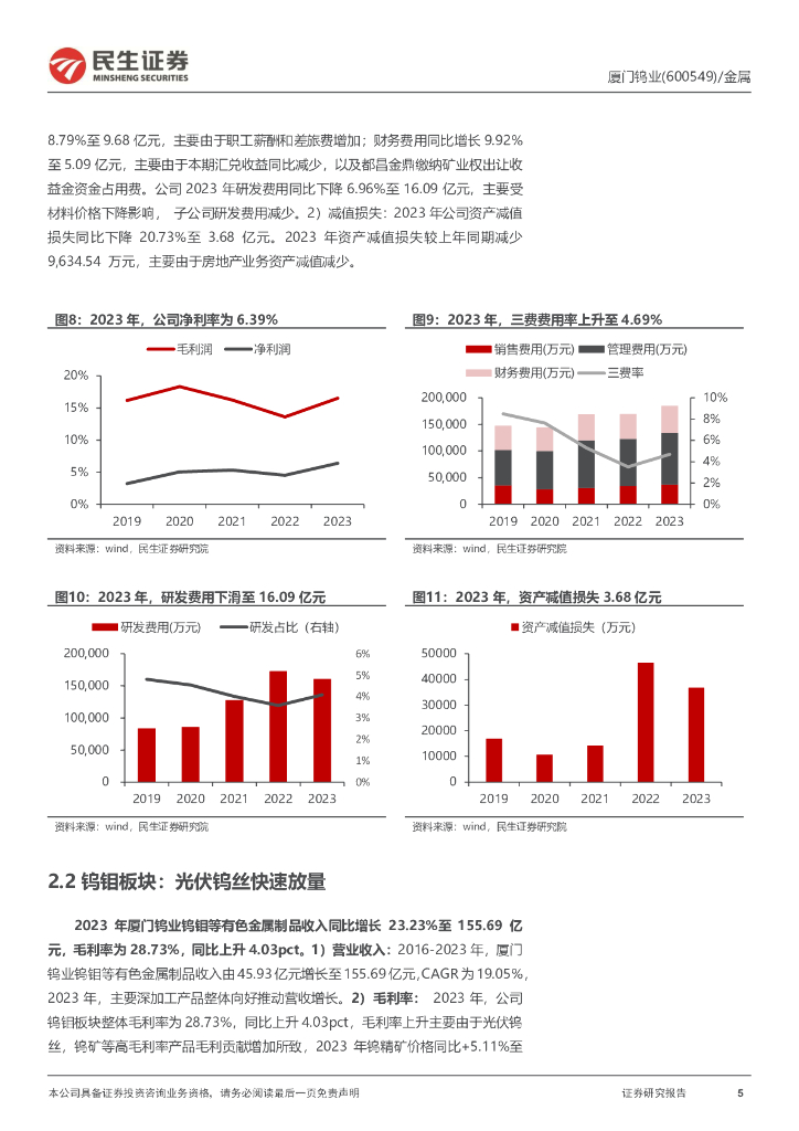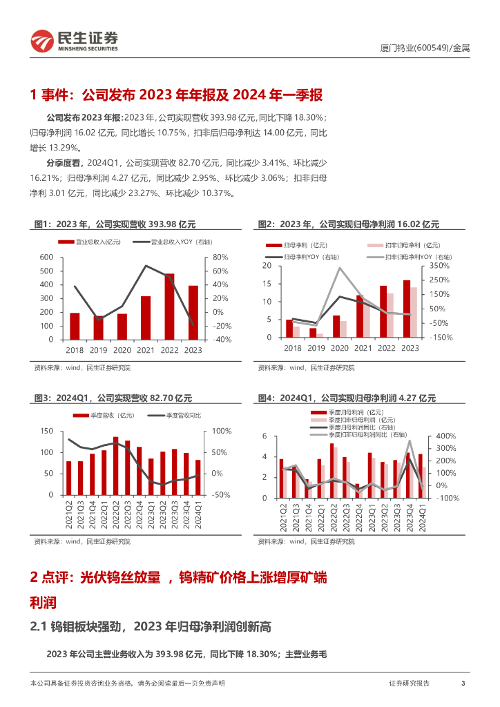 民生证券:厦门钨业(600549)-2023年年报及2024年一季报点评:光伏钨丝持续放量,钨价走高增厚矿端利润.pdf